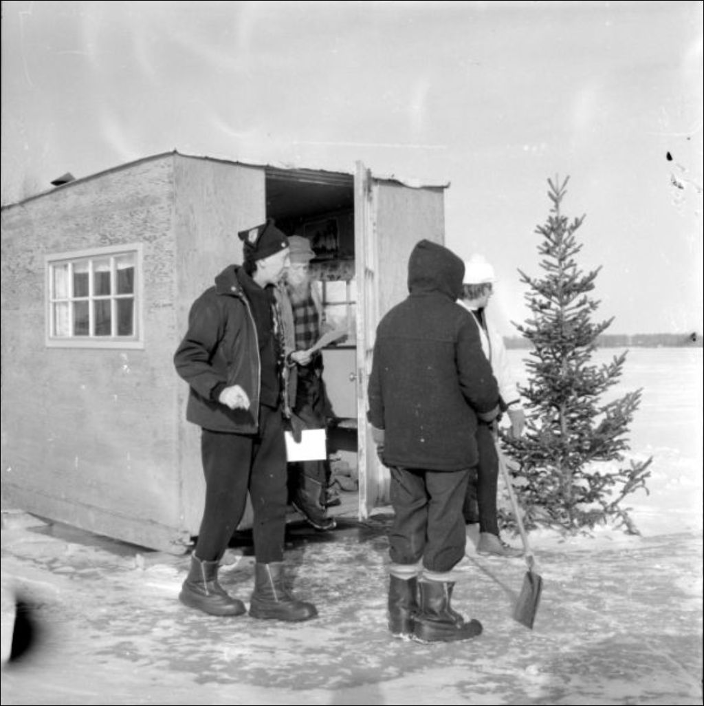 Pêche sur glace, Janvier 1966, Archives nationales à Montréal, Fonds ministère de la Culture et des Communications, (06M,E6,S7,SS2,D66-202), Jean-René Mongeau.