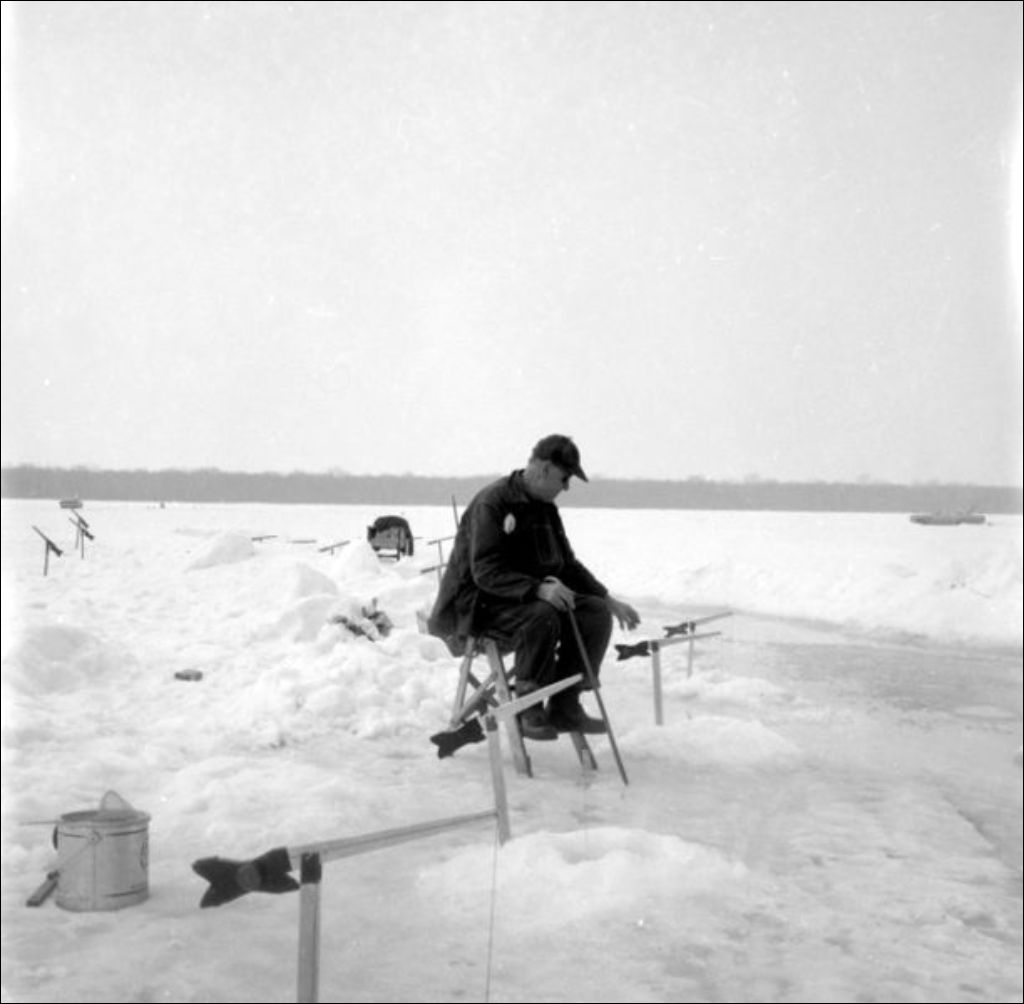 - Il s'agit d'un paysage d'hiver représentant une voiture près d'un banc de neige à Saint-Placide. Des familles s'adonnent à la pêche sous la glace à la baie de Carillon. Un enfant pose devant les perchaudes prises durant la journée. Sur le site se trouvent les installations, les cabanes et l'équipement de pêche. Dossier commandé par le ministère du Tourisme, de la Chasse et de la Pêche, Service d'aménagement de la faune
