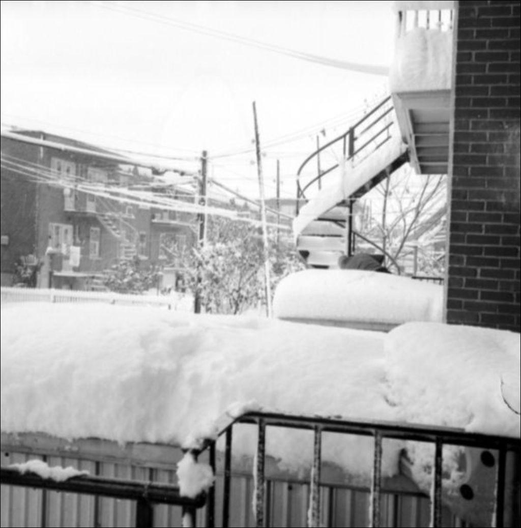 Première tempête de neige de l'année sur l'avenue de l'Esplanade à Montréal, 12 novembre 1968, Archives nationales à Montréal, Fonds ministère de la Culture et des Communications, (06M,E6,S7,SS2,D68-68), Albert Courtemanche.