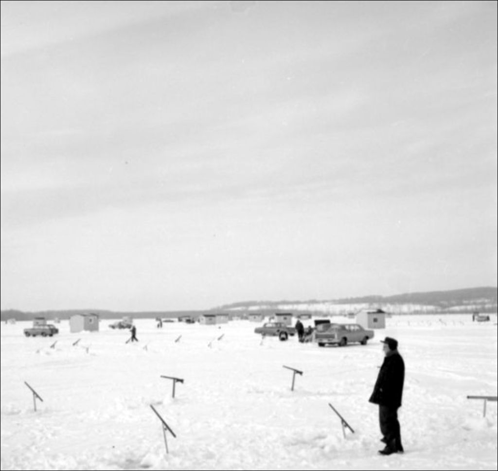 - Activités de pêche sous la glace à la baie de Carillon (69-9-1, 69-9-3 et 69-9-5) où des pêcheurs exhibent une lotte (69-9-4) et des perchaudes (69-9-6). Sur les sites d'Oka et de Pointe-Calumet (69-9-7), on pêche le brochet du Nord (69-9-9)