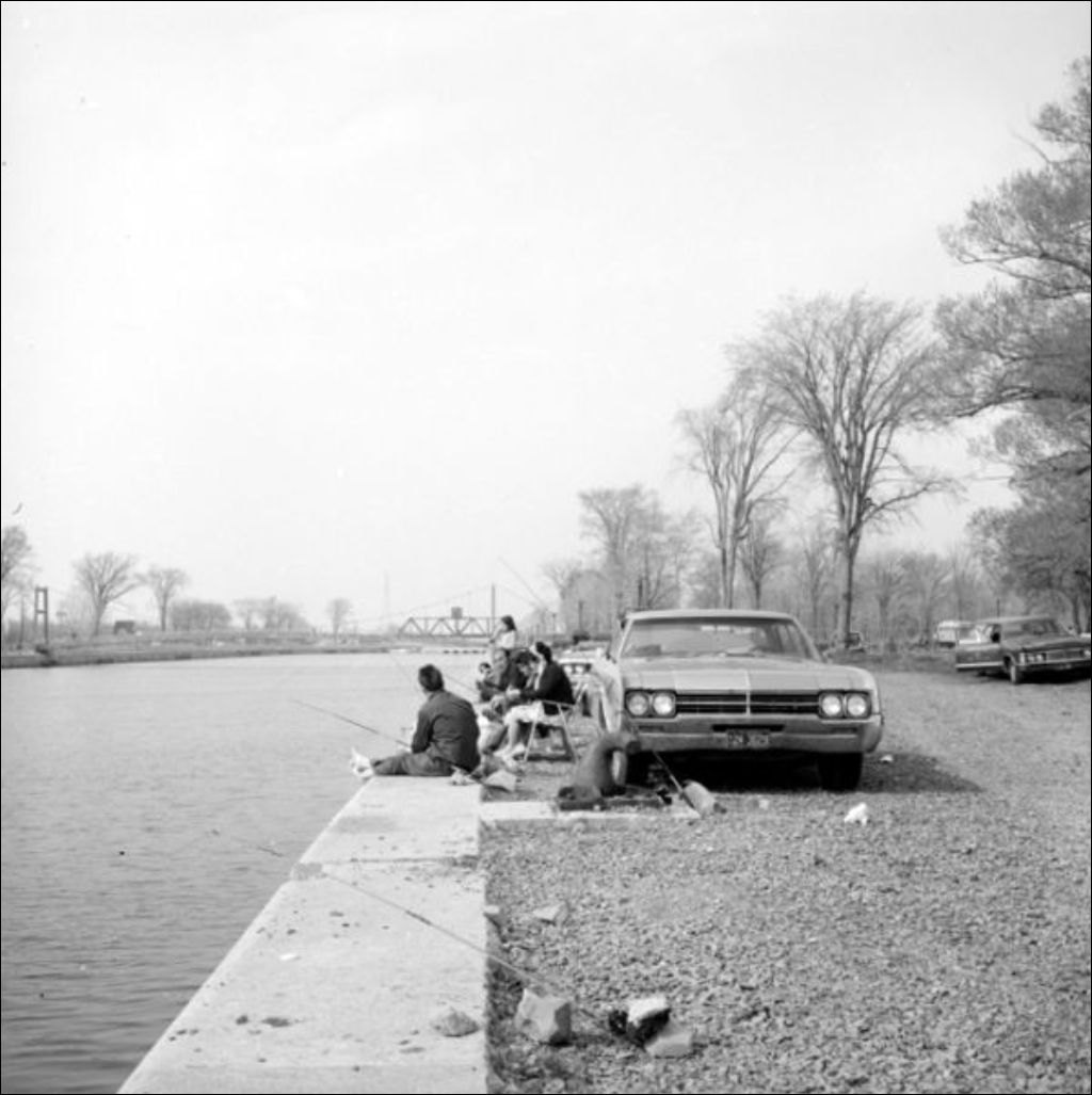 - À Coteau-Landing, des pêcheurs sont réunis sur la jetée (70-8-4) et le long du canal, à l'ouest du parc provincial (70-8-1 à 70-8-3). À Pointe-aux-Anglais, des bateaux se trouvent en cale sèche sur le quai (70-8-5). À Rawdon, nous remarquons les chutes Dorwin (70-8-7). À la rivière des Prairies, dans le quartier de Saint-Vincent-de-Paul (Ville de Laval), un pêcheur exhibe des laquaiches et des barbus (70-8-8)