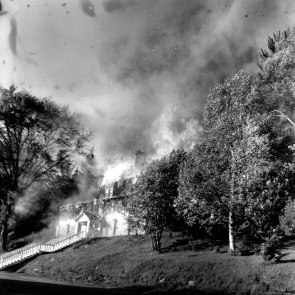 Incendie de l'Auberge des Pins au lac Joseph, 10 juin 1970, Archives nationales à Montréal, Fonds ministère de la Culture et des Communications, (06M,E6,S7,SS2,D71-2), Albert Courtemanche.