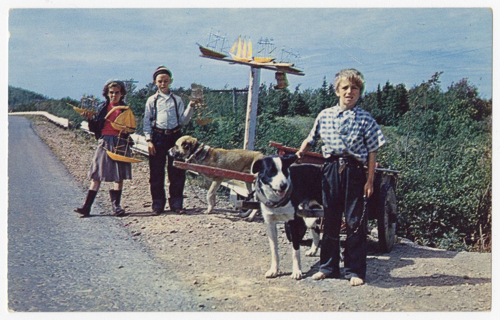 Des enfants joyeux (avec charrettes) vendant les petits bateaux.