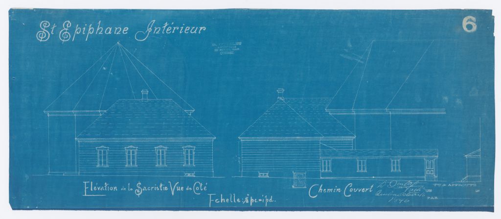 Élévation de la sacristie et du chemin couvert, feuillet 6