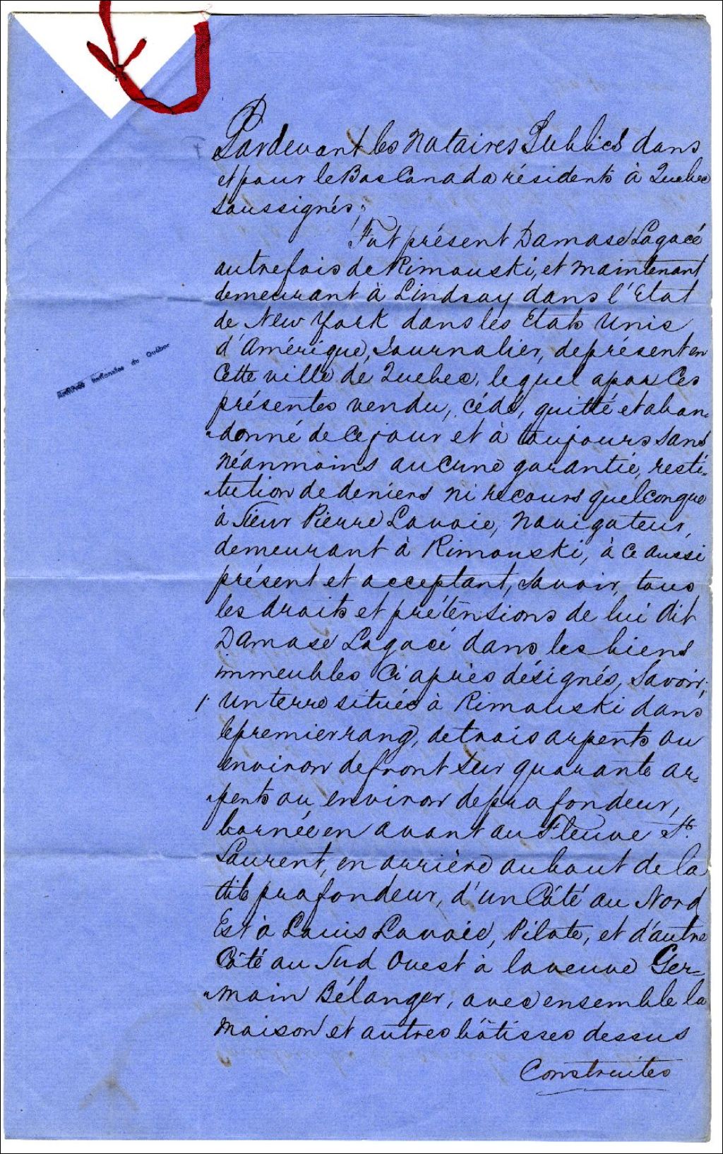 - Vente de droits successifs par Damase Lagacé à Pierre Lavoie