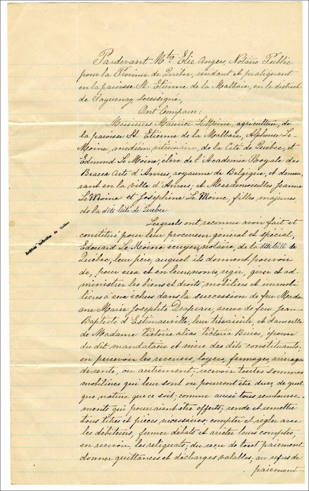 - Procuration générale et spéciale par M. Maurice Lemoine et al. à Édouard Lemoine