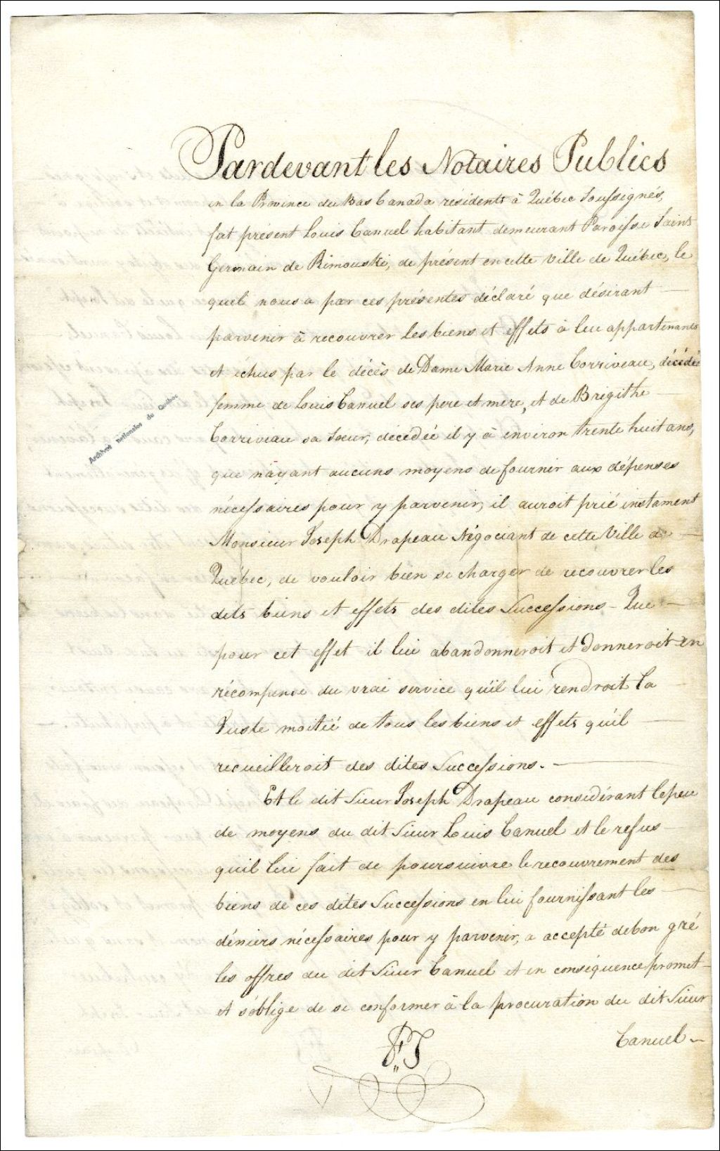 - Conventions et transport par Louis Canuel en faveur de Joseph Drapeau