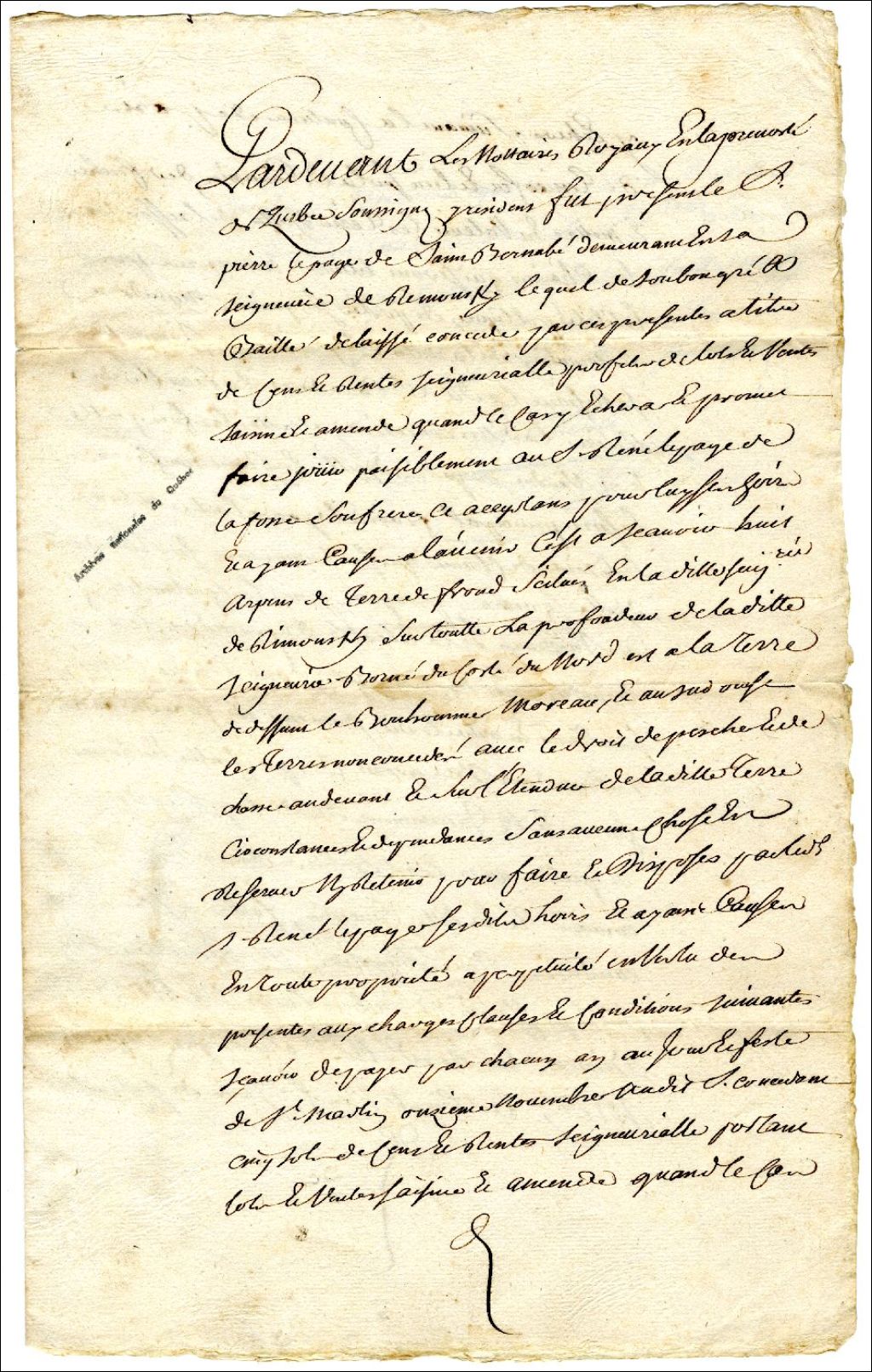 Concession de terre par Pierre Lepage de Saint-Barnabé à son frère René Lepage de la Fosse