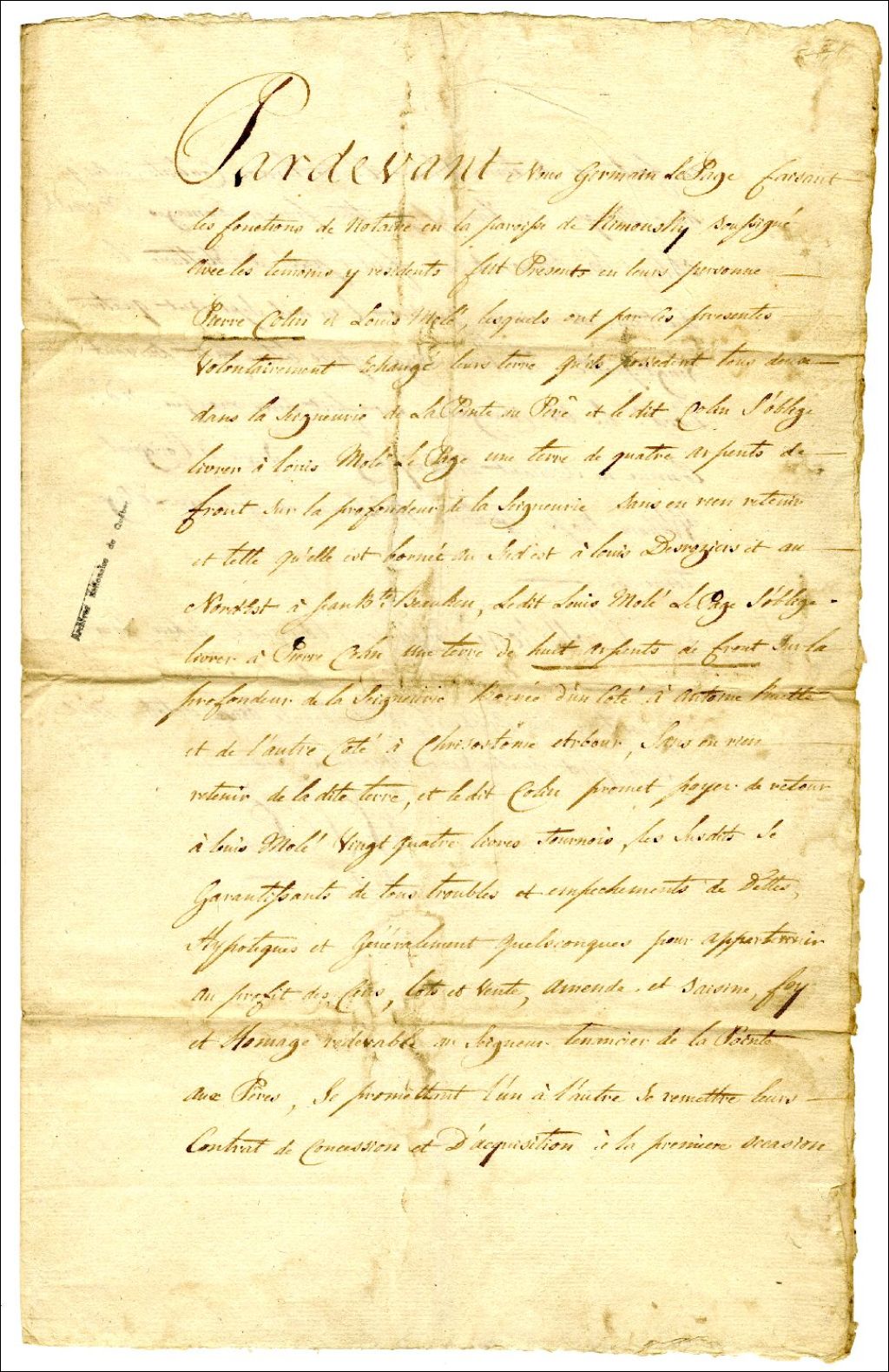 Copie collationnée d'un échange entre Pierre Colin et Louis Molé Lepage, 2 octobre 1784, Archives nationales à Rimouski, Fonds Famille Tessier, (01R,P1,S11,P51).