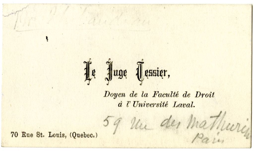 Carte d'affaires du juge Ulric-Joseph Tessier