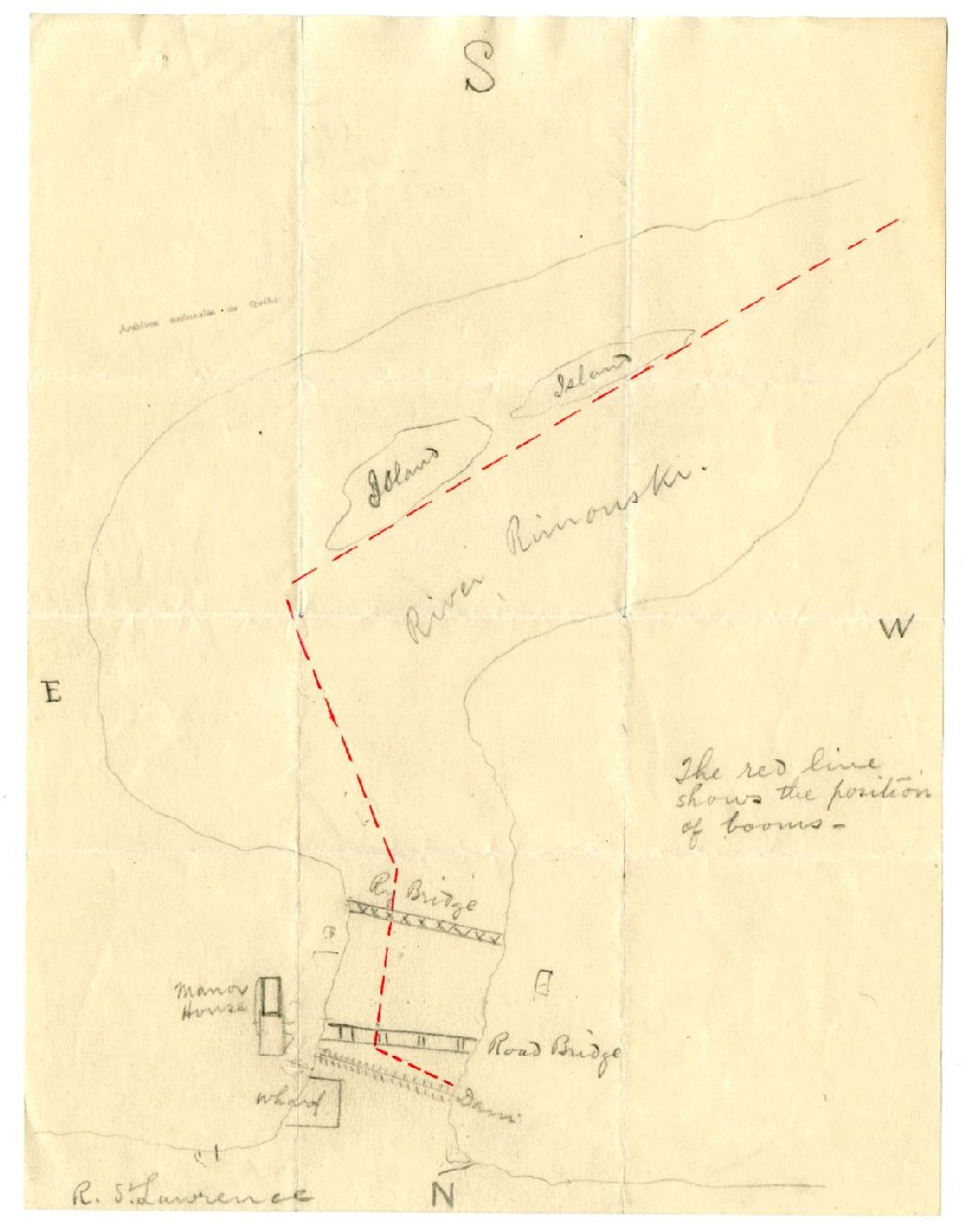 Esquisse de la Rivière Rimouski, des ponts et du barrage