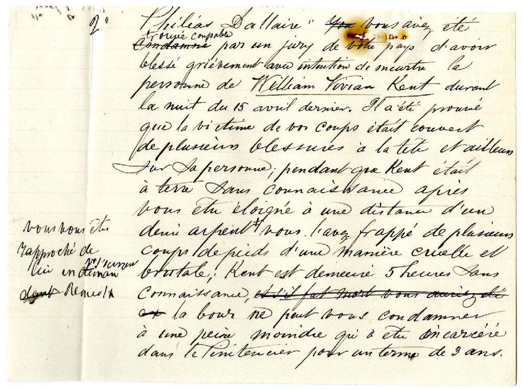 Notes sur le jugement de Philéas Dallaire tirés du registre de la cour criminelle