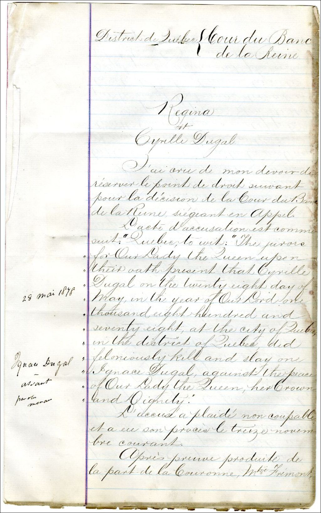 - [Jugement] de la cause Regina & Cyrille Dugal