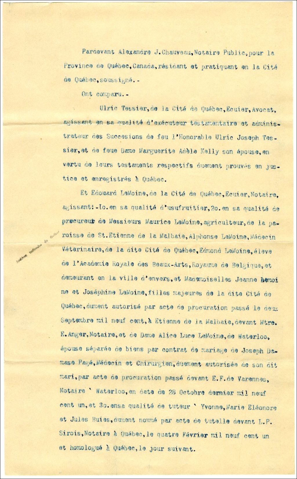 - Modification au contrat de vente de bois de Saint-Fabien avec la Price Brothers & Company