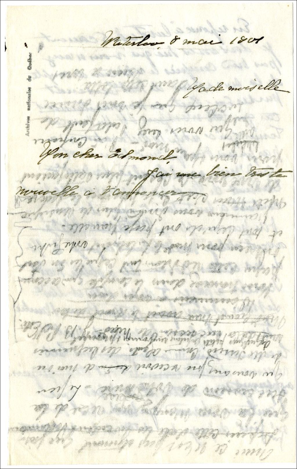 Brouillon d'une lettre concernant la succession d'Arthur Buies, [ca 1901], Archives nationales à Rimouski, Fonds Famille Tessier, (01R,P1,S3,SS2,P202).
