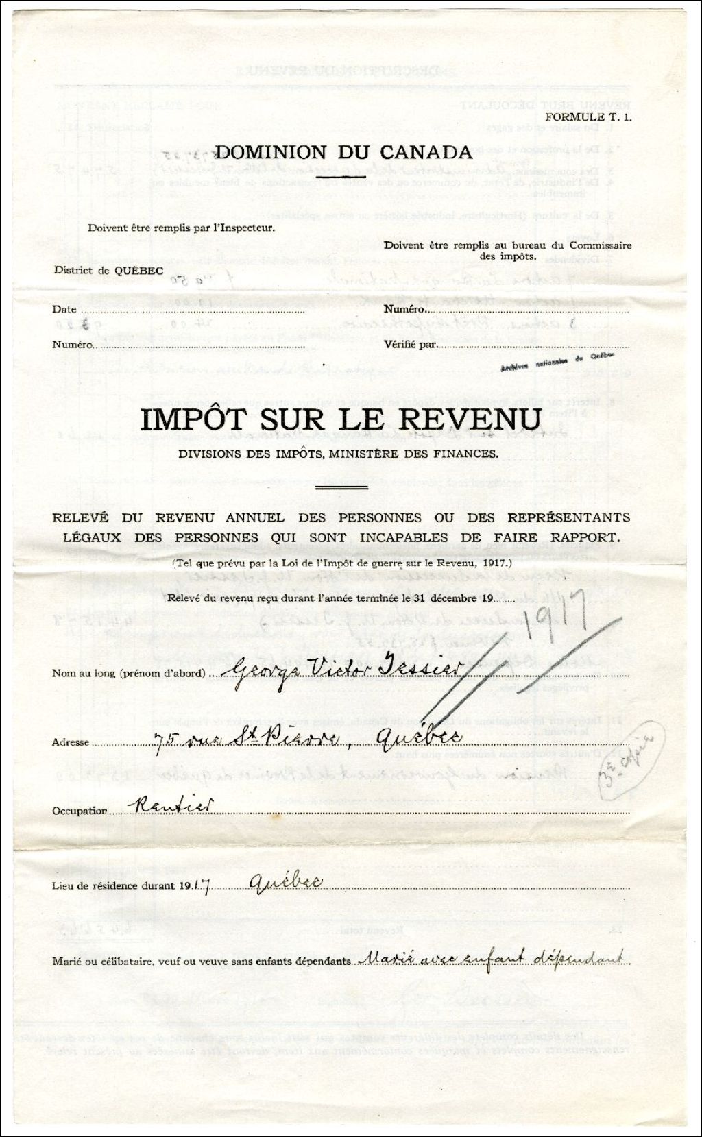 - Rapport d'impôt sur le revenu de Georges-Victor Tessier