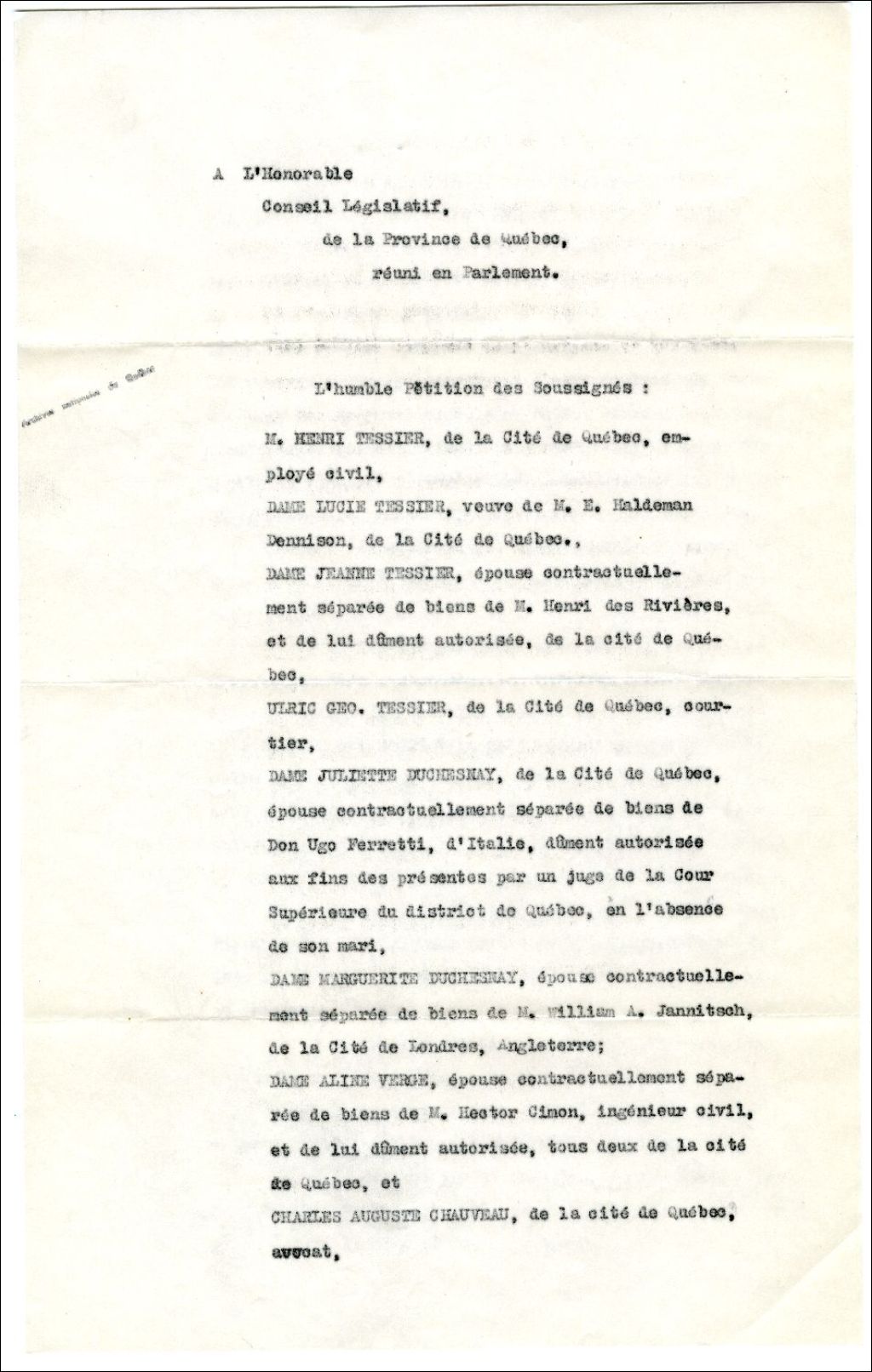 Acte notarié au sujet de la succession d'Ulric-Joseph Tessier