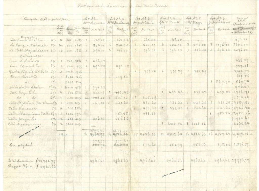 État et partage de la succession de feu Ulric Tessier