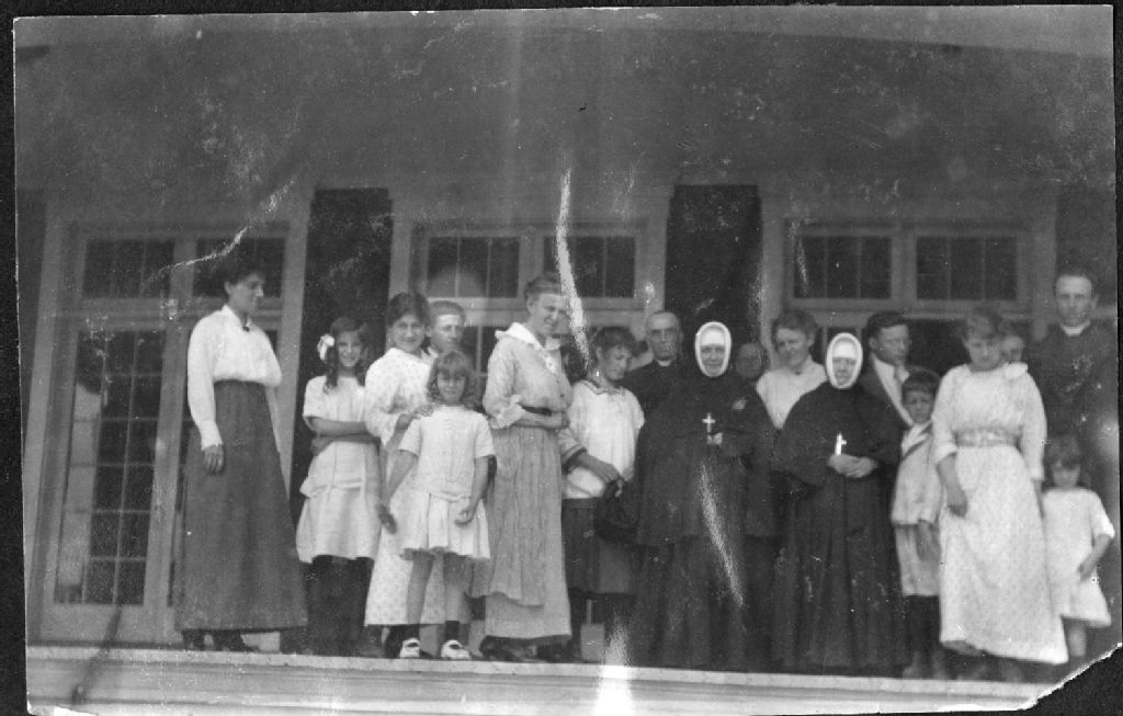 Inconnue, les familles Dubuc et Desautels visitées par la vieille tante.Soeur Cécile accompagnée de la supérieure générale des Soeurs de la Providence à Villa-Marie sur mer à Chandler