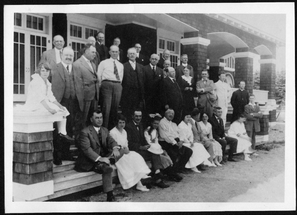 Groupe de financiers des États-Unis reçu à Villa-Marie sur mer, [après 1900], Archives nationales à Saguenay, Fonds Famille Dubuc, (02C,P1,D171,P77-1), Photographe non identifié.