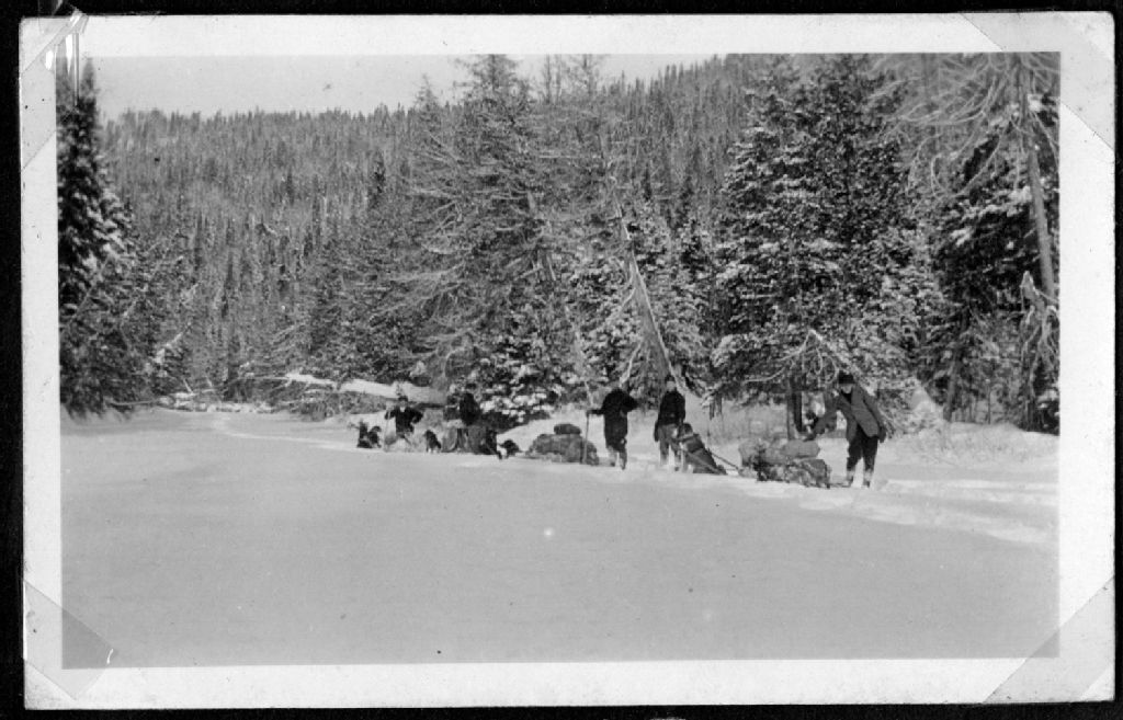 Antoine Dubuc accompagnant un ingénieur forestier, hiver 1922, Archives nationales à Saguenay, Fonds Famille Dubuc, (02C,P1,D172,P48-5), Photographe non identifié.
