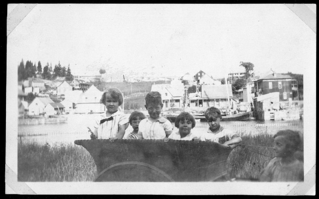 Enfants d'Antoine Dubuc et lerus amis dans la voiture panier