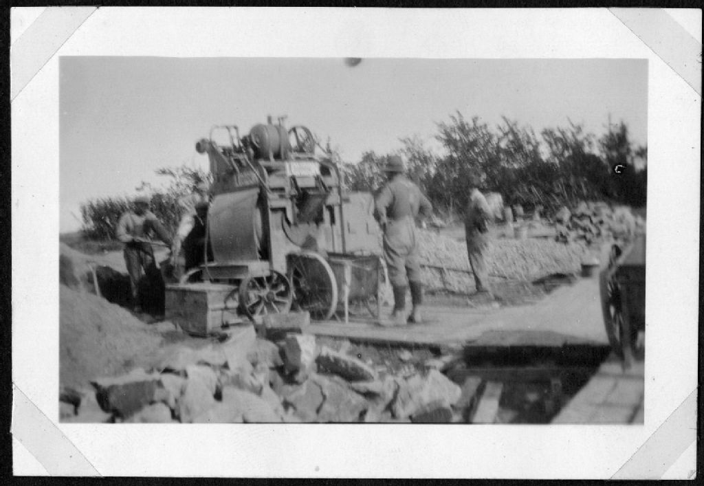Le malaxeur de ciment - Le solage est fini, sept. 1928, Archives nationales à Saguenay, Fonds Famille Dubuc, (02C,P1,D172,P68-6), Photographe non identifié.