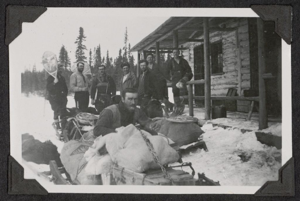 "Installeurs" de la ligne téléphonique : 8 personnes, 1936-37, Archives nationales à Saguenay, Fonds Famille Dubuc, (02C,P1,D174,P1-3), Photographe non identifié.