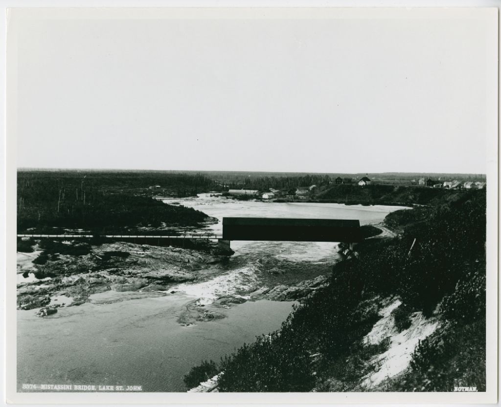 Pont couvert sur la rivière Mistassini, Ca 1898, Archives nationales à Saguenay, Fonds Famille Dubuc, (02C,P1,D176,P38), Photographe non identifié.