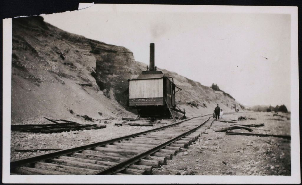 Site de la sablière, accessible par la voie férrée, 1923, Archives nationales à Saguenay, Fonds Famille Dubuc, (02C,P1,D178.3,P10), Photographe non identifié.