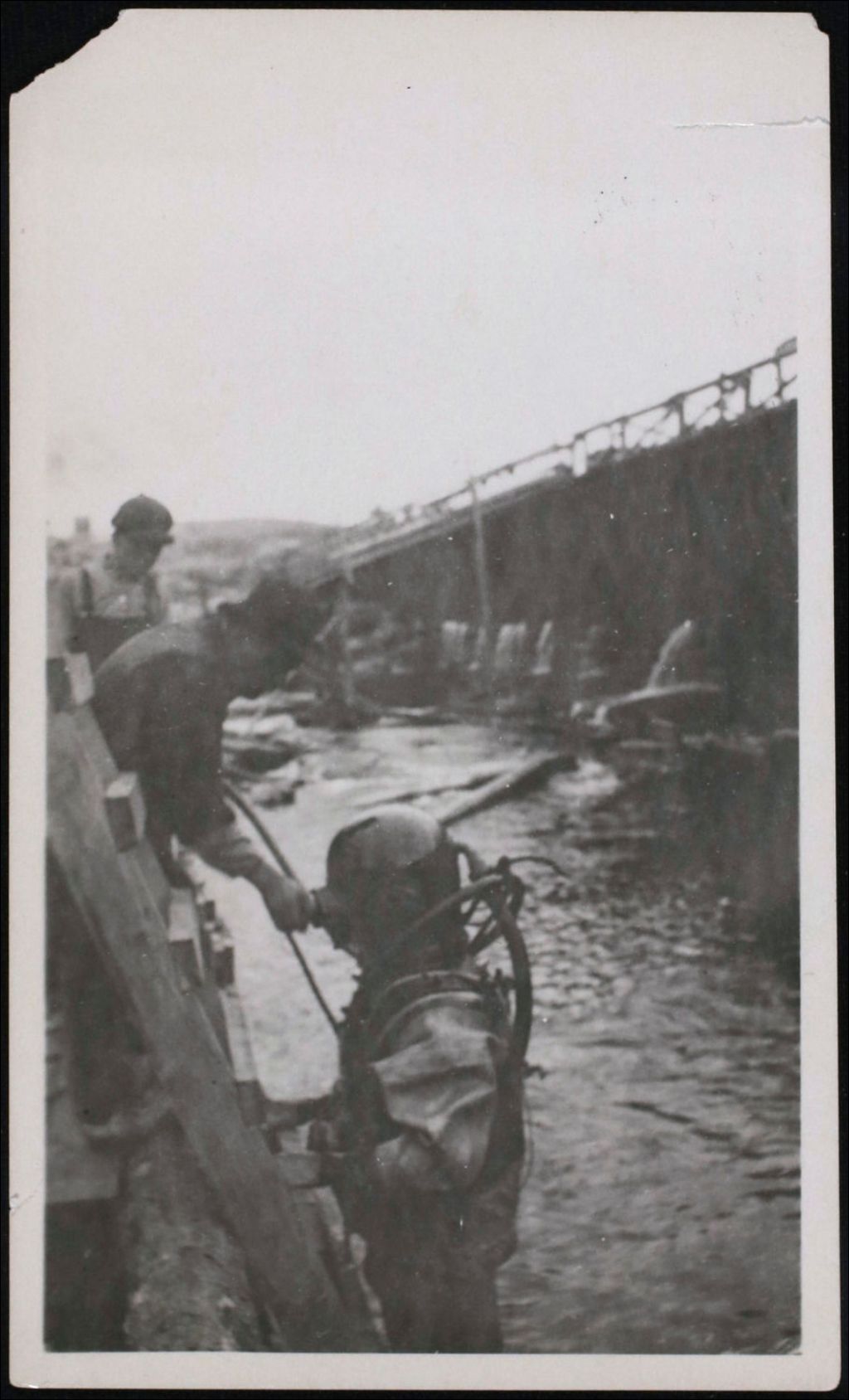 Scaphandrier s'apprêtant à descendre au pied du barrage