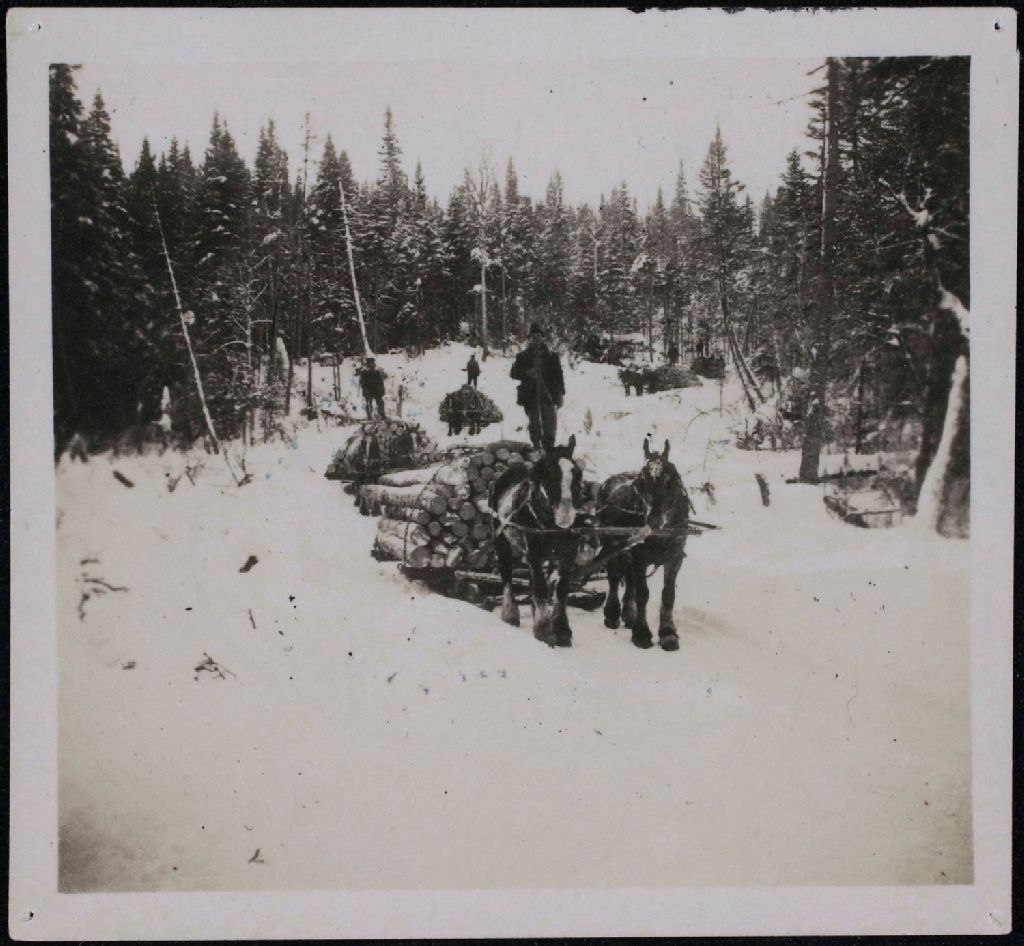Attelage de chevaux trainant du bois