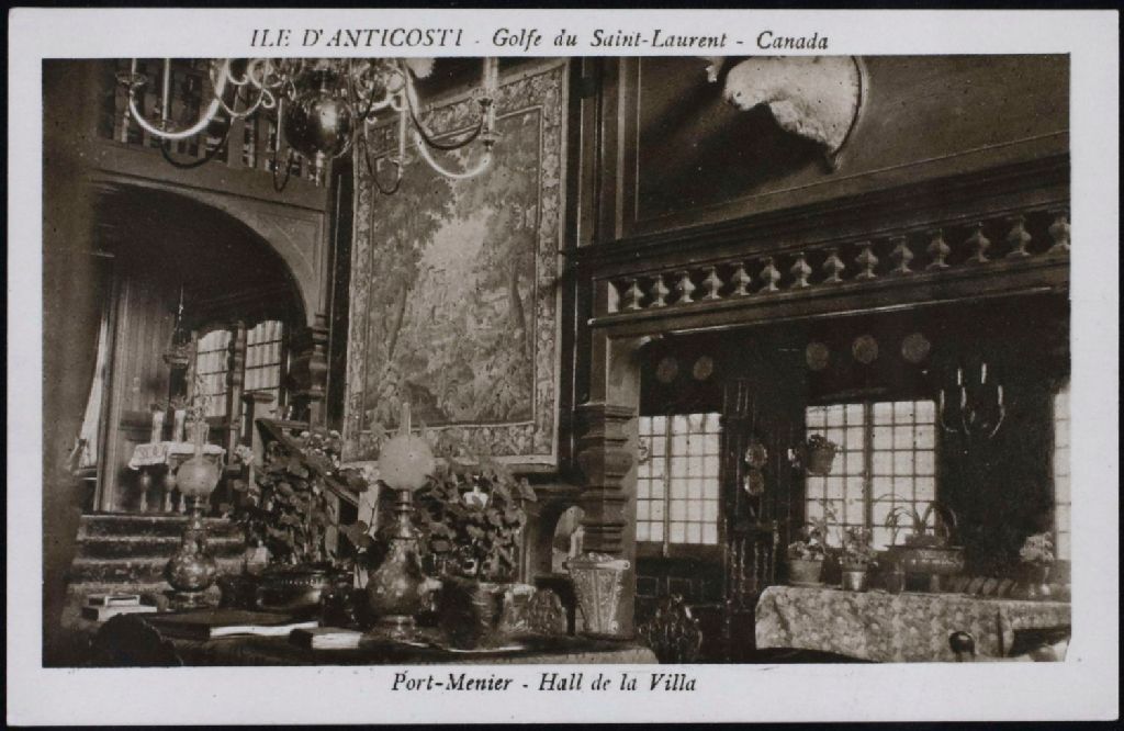 Port Menier, hall de la villa, [1922-1950], Archives nationales à Saguenay, Fonds Famille Dubuc, (02C,P1,D178.9,P20), Photographe non identifié.