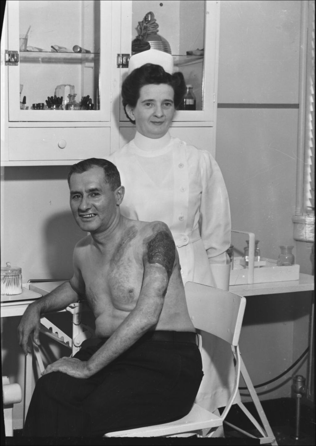 Patient souffrant de brûlures, 1940, Archives nationales à Trois-Rivières, Fonds Henri Sauvageau, (04T,P26,D188), Henri Sauvageau.