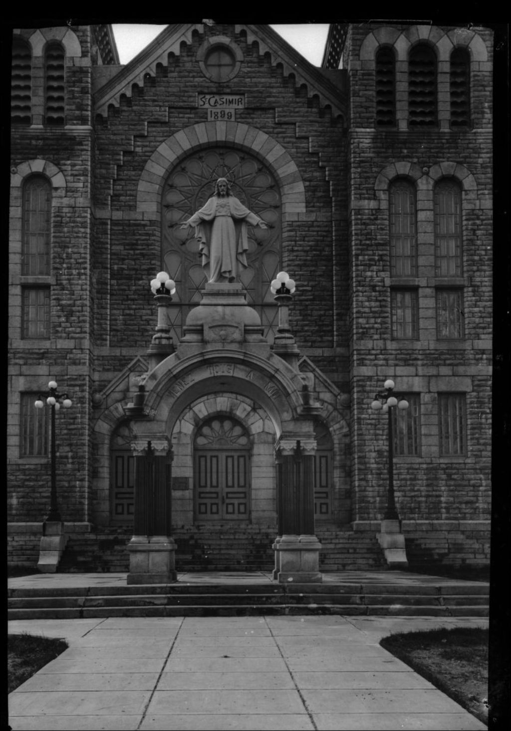 Cette photographie représente la façade de l'église de Saint-Casimir-de-Portneuf. On y voit l'inscription «St-Casimir 1899»