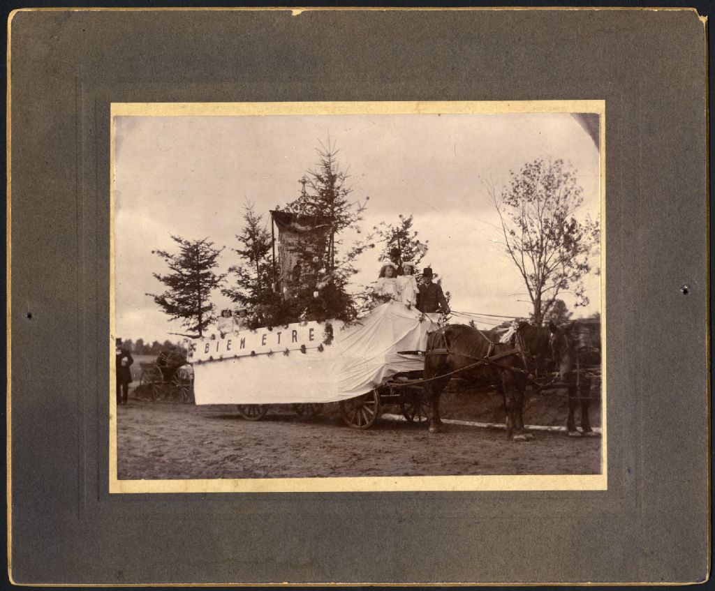 - Char allégorique "Bien être" tiré par plusieurs chevaux lors d'une parade de la Saint-Jean-Baptiste