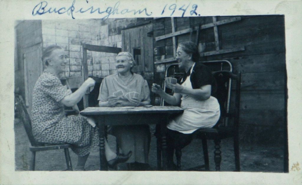 Sur la photo on aperçoit les joueuses de cartes suivantes : Mme Jos Aubé (Paméla Lalonde), Mme Janvier Chénier (Rose de Lima Asselin) et Mme Jos Daniel