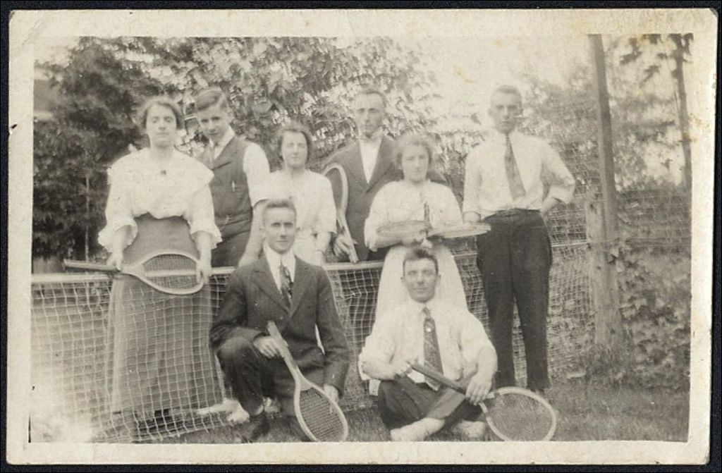 - Ce dossier porte sur la pratique du tennis, par des jeunes gens et des jeunes filles de la région de Buckingham, chez la famille Léger. Parmi les joueuses et joueurs endimanchées tenant raquette de tennis autour du filet; on trouve Cyrille Paquette, Arthur Boileau, Henricia Régimbald, Rose-Ella Léger, Antoine Bouladier, J.M. Mongeon?, Lorina Léger et ? Mongeon