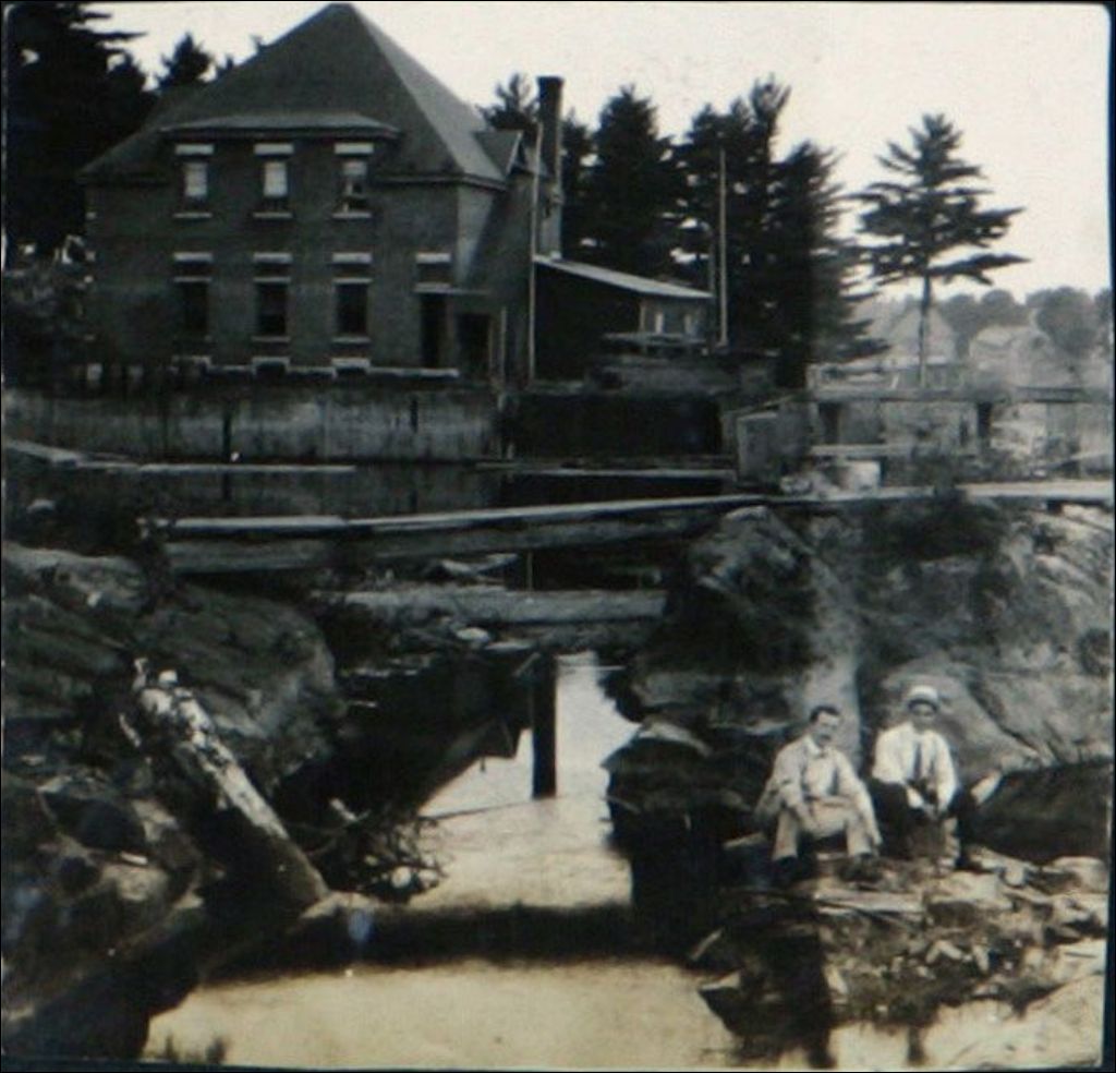 Château d'eau à Buckingham : 2 hommes assis au bas des rochers