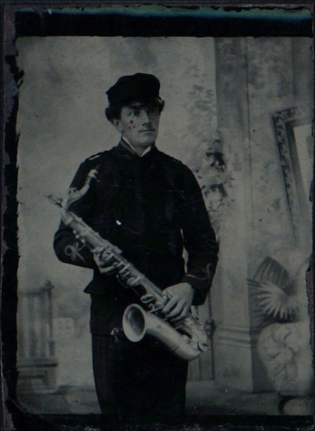 Rodolphe Léger, 17 ans, tenant un saxophone