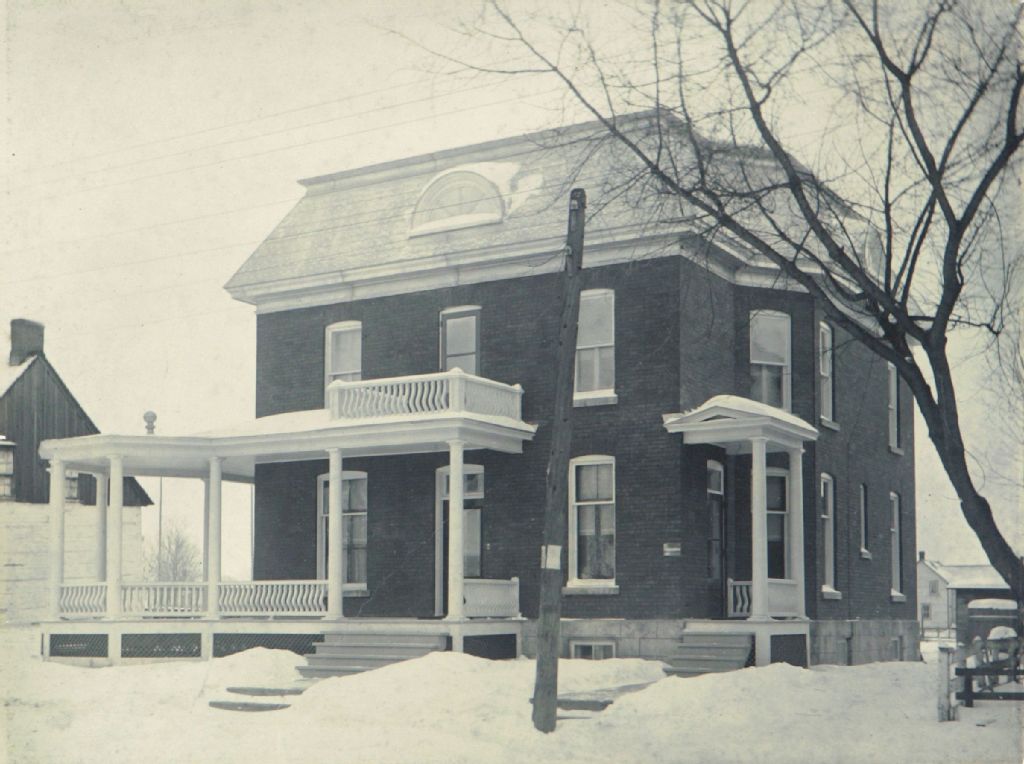 Résidence victorienne, en brique avec véranda et balcon, construite en 1914 pour l'avocat Joachim Talbot, rue MacLaren à Buckingham, [191-?], Archives nationales à Gatineau, Fonds Rodolphe Léger, (07H,P28,D344), Photographe non identifié.