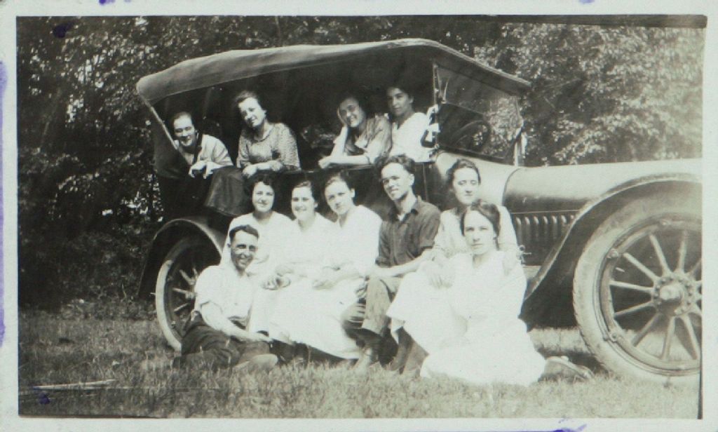 Automobiles transportant la famille Léger et des ami(e)s, [Vers 1910-vers 1930]], Archives nationales à Gatineau, Fonds Rodolphe Léger, (07H,P28,D361), Photographe non identifié.