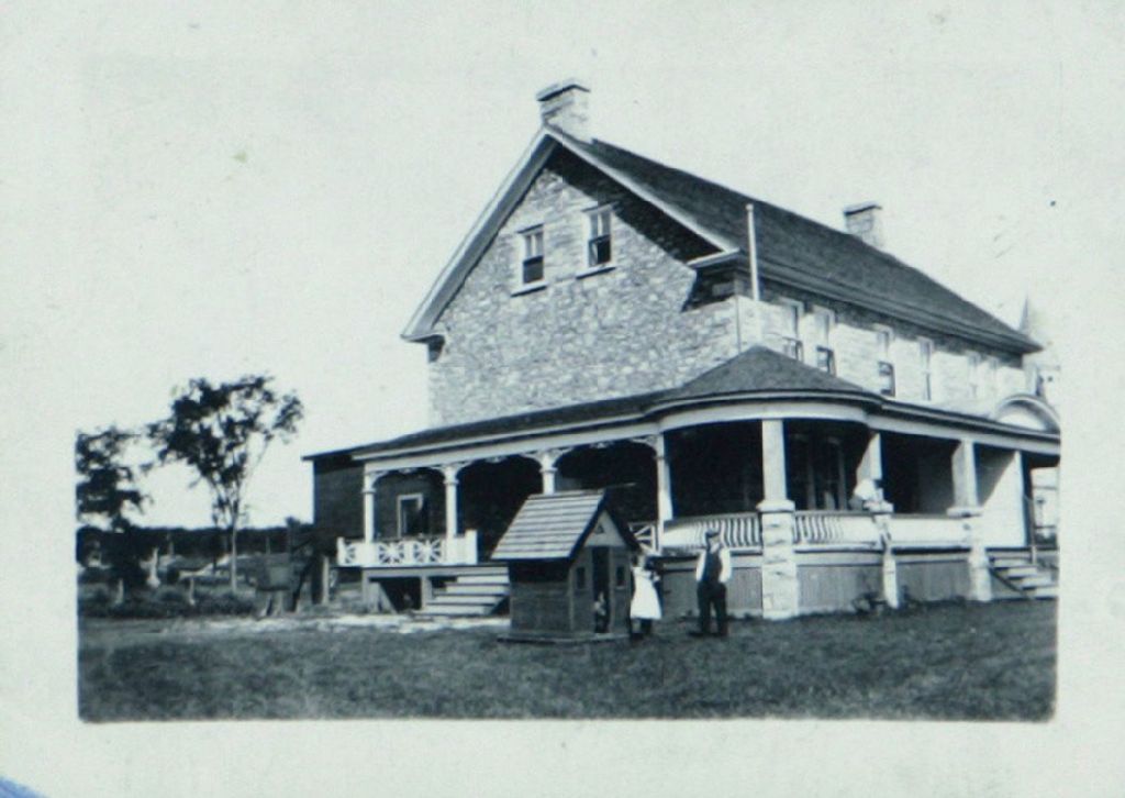 Résidence en pierre et résidence en bois avec studio, les deux ayant appartenues à Rodolphe Léger, [1930], Archives nationales à Gatineau, Fonds Rodolphe Léger, (07H,P28,D387), Photographe non identifié.