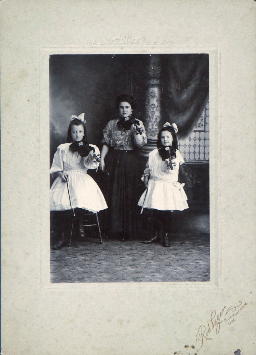 Une mère et ses deux filles musiciennes tenant chacunes un violon, [192-?], Archives nationales à Gatineau, Fonds Rodolphe Léger, (07H,P28,D99), Photographe non identifié.