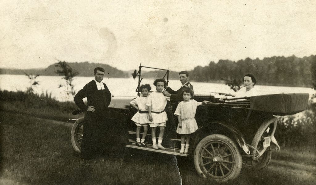 - Le dossier compend des photographies de l'automobile de Zéphyr Laflèche.Sur une des photographies, l'automobile est sans toit, on y retrouve aussi Omer, son frère et Albetine Madore, sa femme et trois de ses enfants.Une autre des photographies montre l'automobile de face, avec son frère Mastaï (Frère Urbain), sa mère (Olive Cadieux) et son père, Isaïe, assis sur le siège arrière.L'autre photographie montre l'automobile sur le côté avec son frère Omer, sa mère et son père assis dans l'automobile
