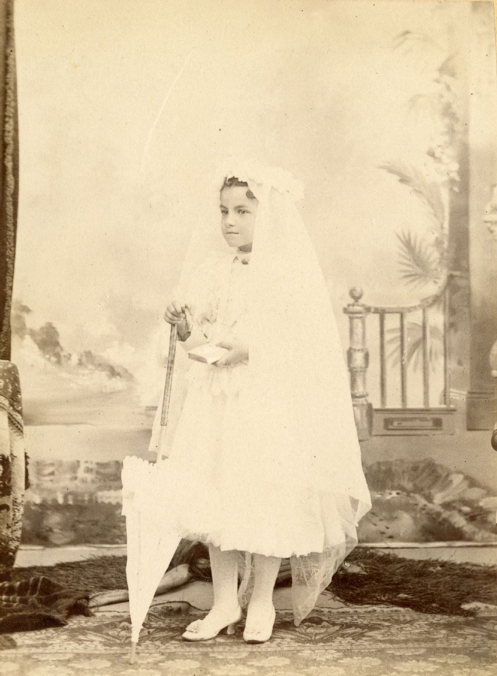Première communion de Dona Laflèche, 1892, Archives nationales à Gatineau, Fonds Wilfrid Sanche, (07H,P106,S1,P27), Photographe non identifié.