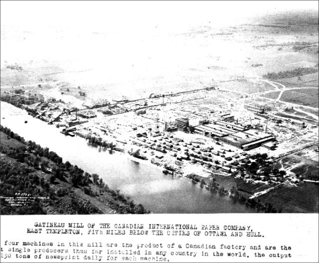 Vue aérienne des installations de la Canadian International Paper Company (C.I.P.) à Gatineau