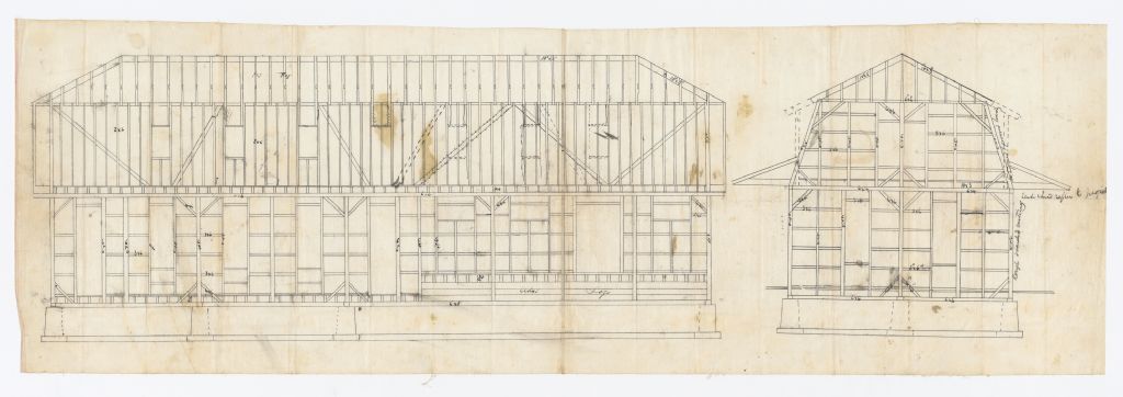 Plans de charpente, 1826-1902, Archives nationales à Rimouski, Fonds François Soucy, (01R,P57,D21,P4), Photographe non identifié.