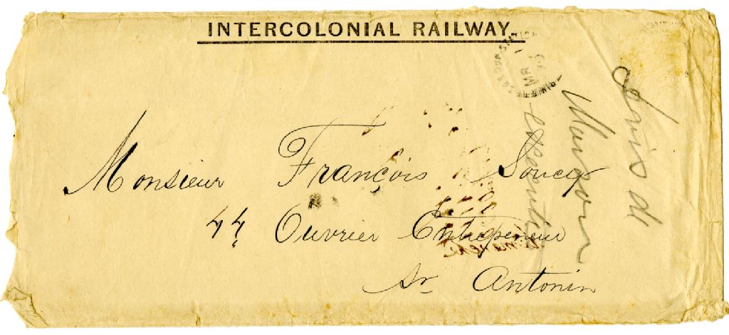 Deux enveloppes adressées à François Soucy par l'InterColonial Railway