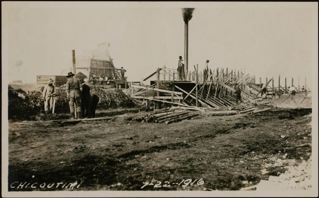 Forms on North wall machine room, East end and « champion » crusher = La forme du mur nord, vue du bout est, broyeur de type "Champion"